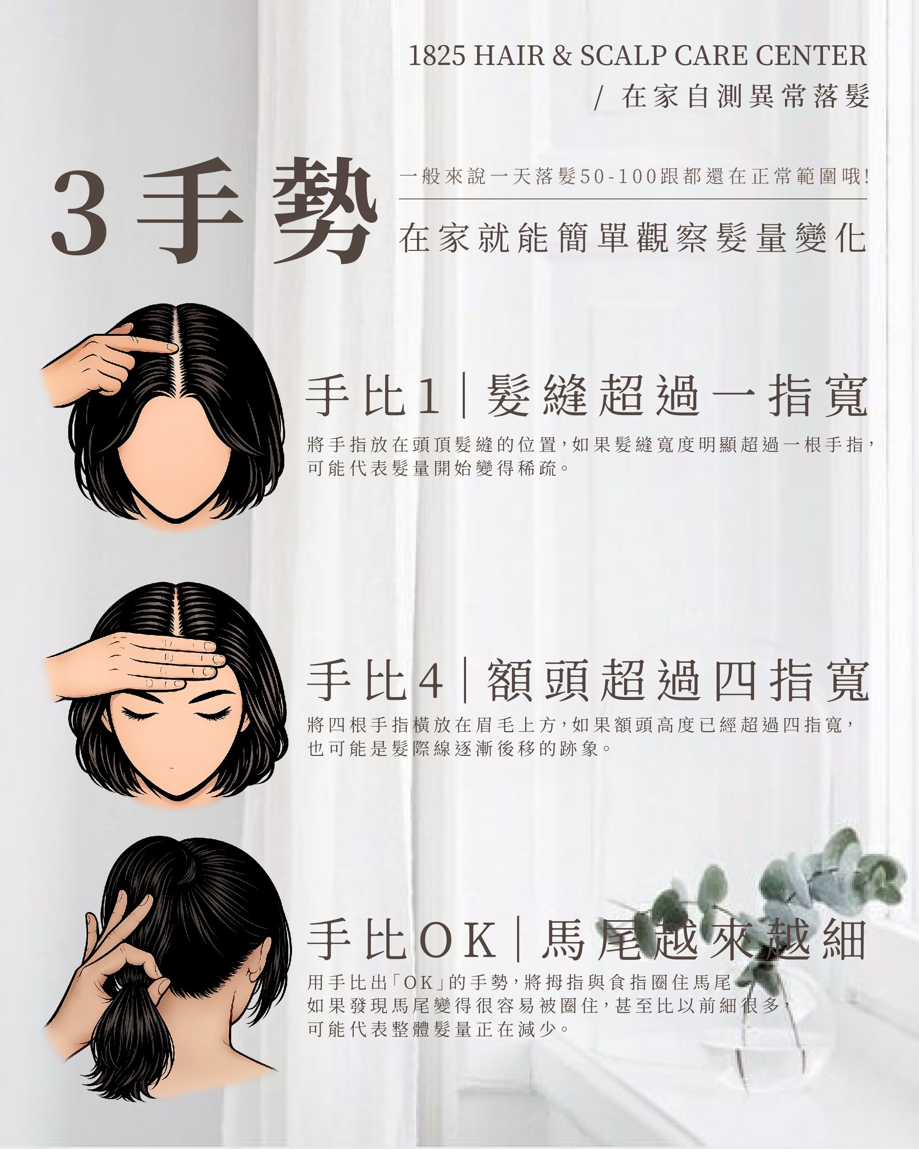 只要用手指簡單比一下,就能初步看看是否出現落髮的警訊。