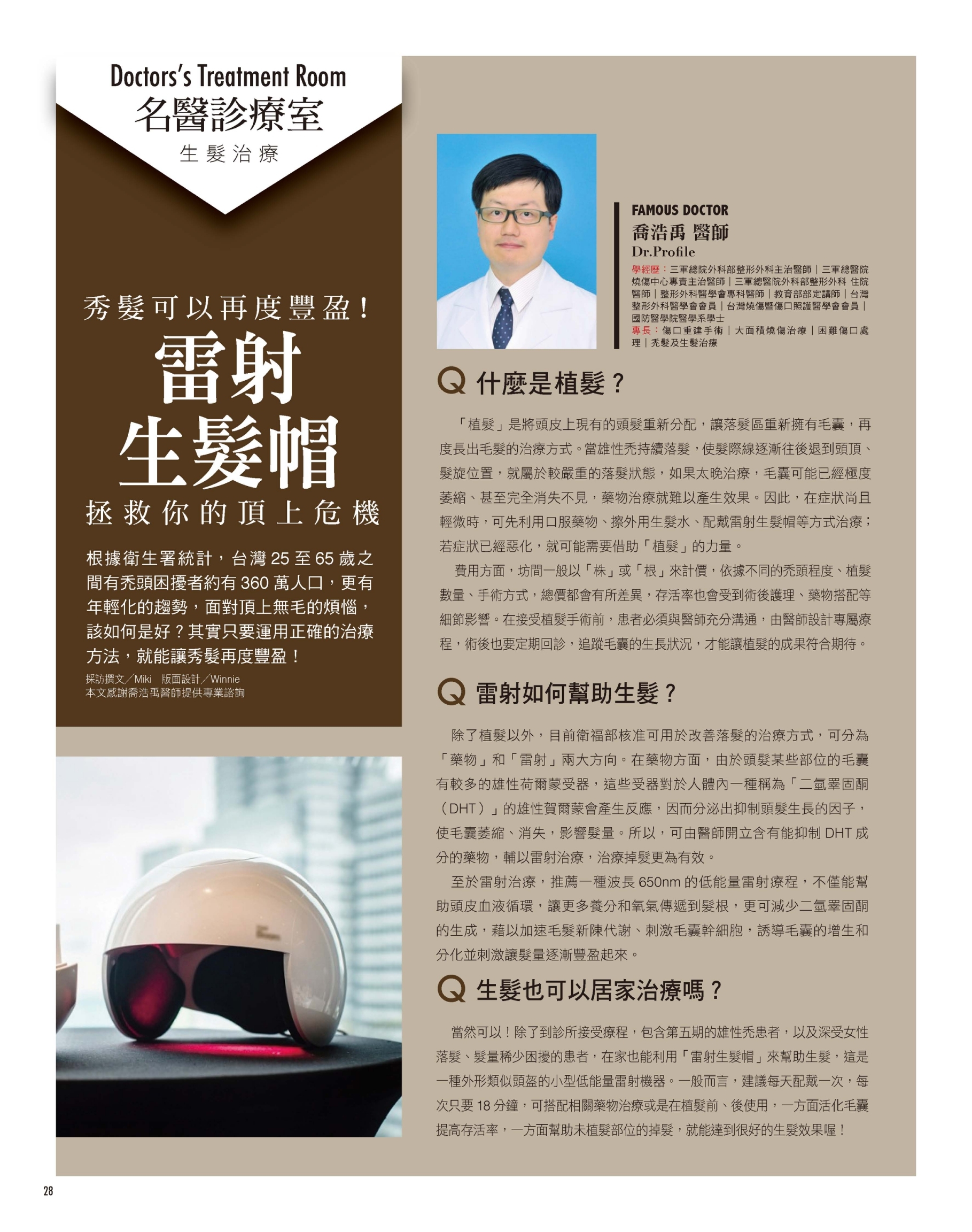 【整形外科喬浩禹醫師】秀髮再度豐盈!雷射生髮帽拯救你的頂上危機